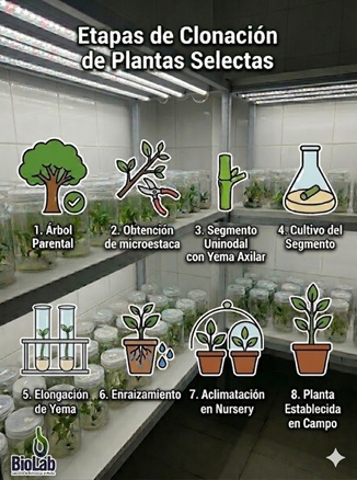 - Micropropagación de Vanguardia: Mediante protocolos biotecnológicos, se asegura la homogeneidad de los individuos, garantizando que cada árbol plantado tenga una tasa de supervivencia y crecimiento superior.